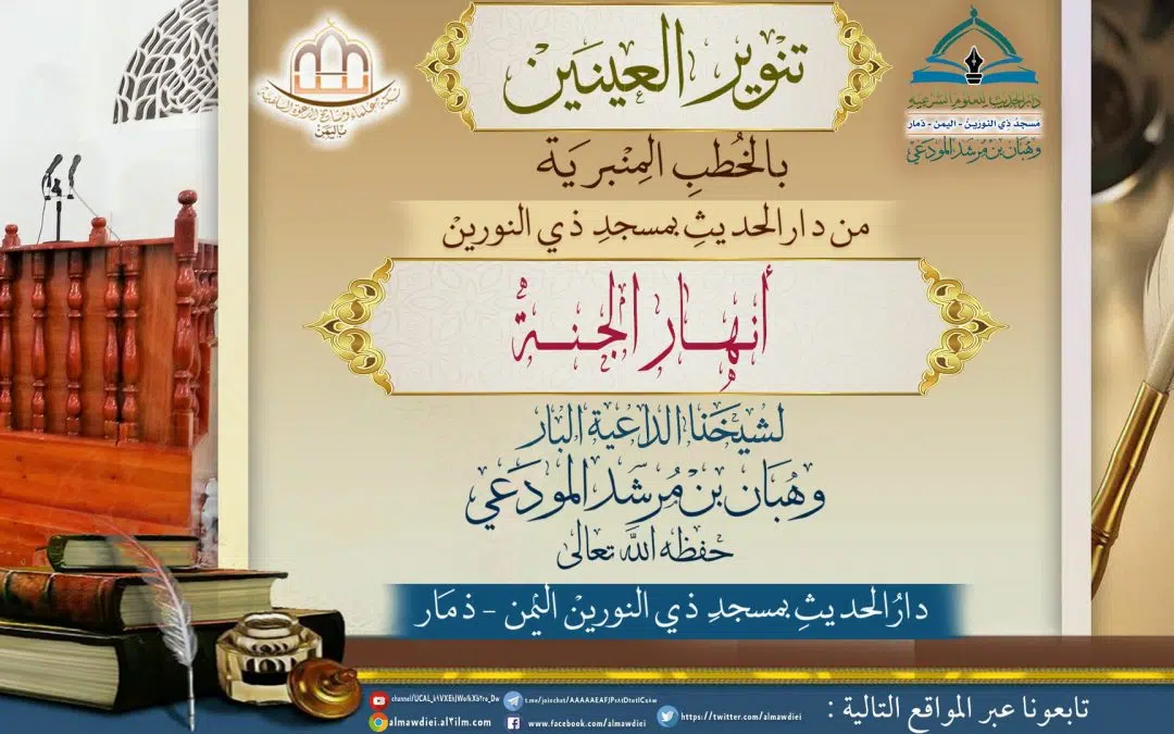 أنهـــار الجنــــة الأثنين ۲۷ جمادى الأولى ۱٤٤۲ هـ الموافق ۱۱ يناير ۲۰۲۱ مـ | الخطب | شارك بتعليقك أنهـــار الجنــــة خطبة لشيخنا الداعية البار وهبان بن مرشد المودعي حفظه الله تعالى أُلقيت بدار الحديث للعلوم الشرعية بمسجد ذي النورين ـ اليمن ـ ذمار بتاريخ : 24 جمادى الأولى لعام 1442هـ PlayStop نافذة X مقالات ذات صلة ما أعده الله لأهل الجنة من القصور والحور صفة أشجار الجنة وطعام أهلها أنهار الجنة اترك ردإلغاء الرد