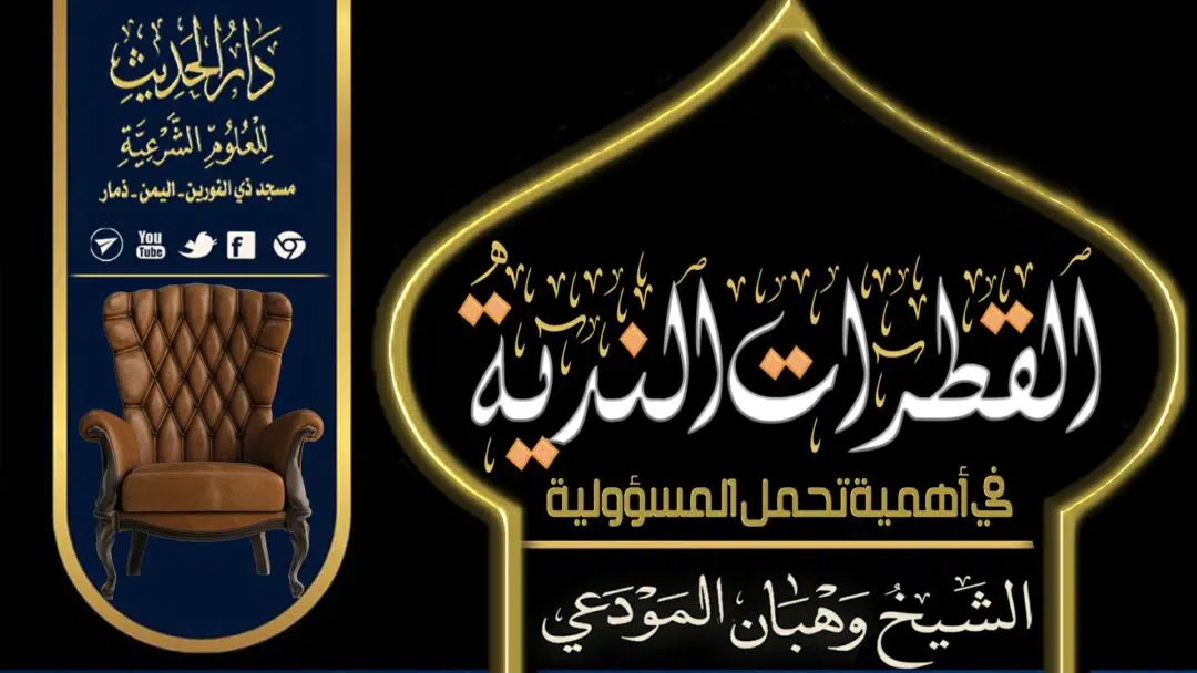 القطرات الندية في أهمية تحمل المسؤولية الجمعة ۲۳ صفر ۱٤٤۵ هـ الموافق ۸ سبتمبر ۲۰۲۳ مـ | المحاضرات | شارك بتعليقك القطرات الندية في أهمية تحمل المسؤولية لشيخنا الداعية وهبان بن مرشد المودعي حفظه الله تعالى أُلقيت بدار الحديث للعلوم الشرعية بمسجد ذي النورين ـ اليمن ـ ذمار PlayStop نافذة X مقالات ذات صلة الأدب وسيلة إلى كل فضيله أقوال مهمة في بيان فضل الأخوة القطرات الندية في أهمية تحمل المسؤولية اترك ردإلغاء الرد